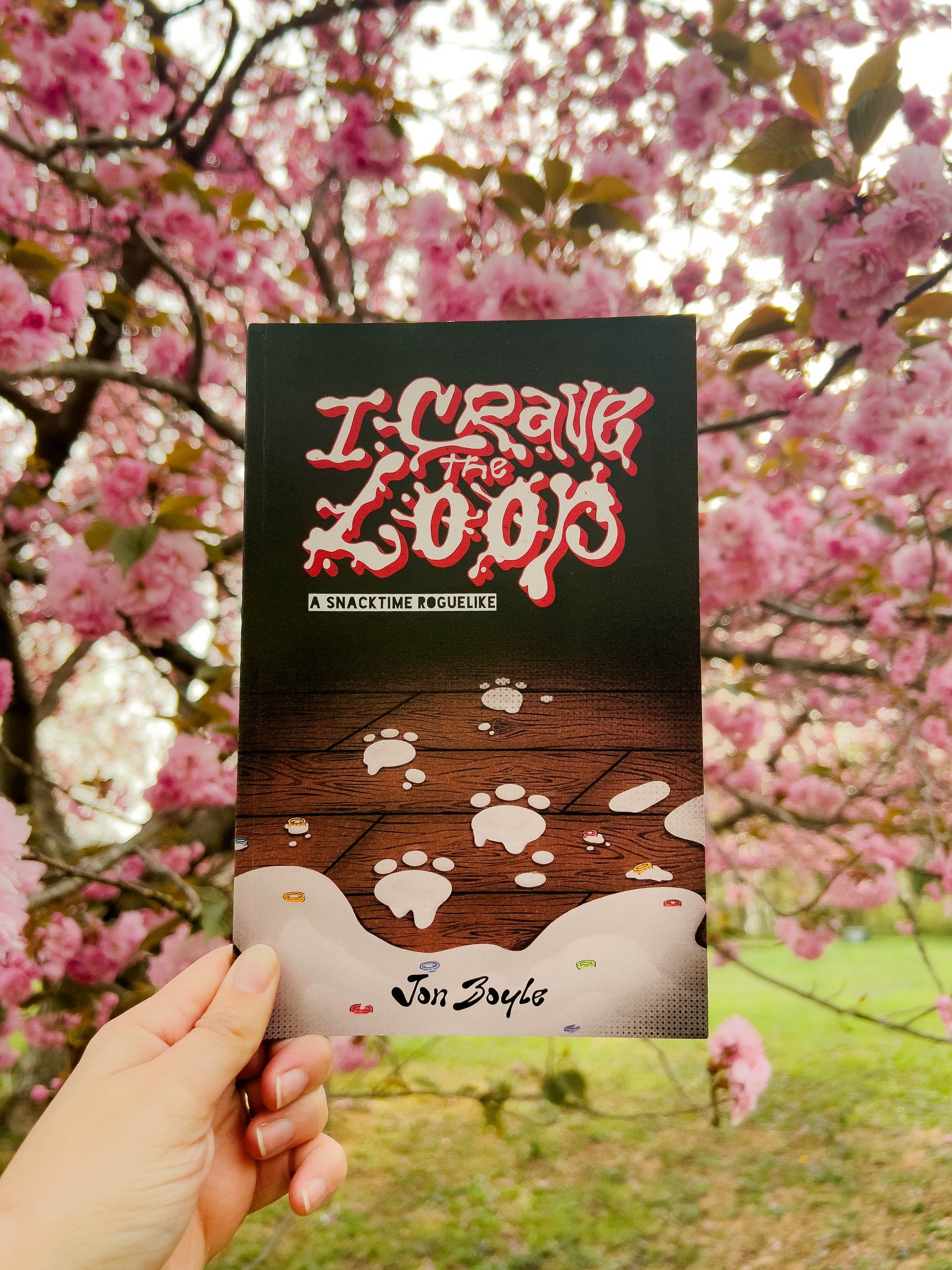 The game uses a real-life snack as the clock for game completion—Each time your character eats, you take a bite in real life. Bites of your snack give your character ZOOMIES that help you to stay ahead of the creature that pursues you, while items unique to each map give you advantages in staying ahead of it. Play smart, and you'll finish your snack in (relative) peace. If the creature catches you, its all over and you can down the rest of your snack.